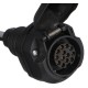 - Toma de 13 pines robusta con tapa para proteger los contactos.