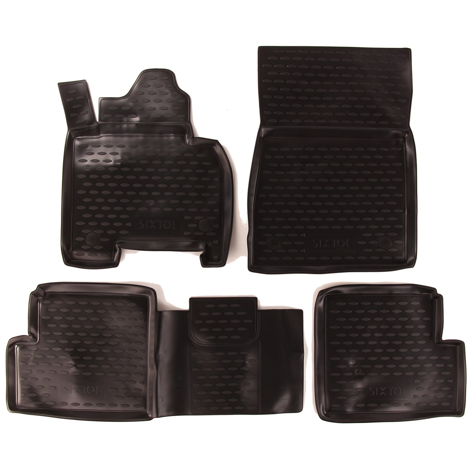 • Una ventaja de estas alfombrillas es el borde elevado, que protege el interior del vehículo de derrames de materiales sueltos (arena, tierra) o líquidos (agua), suciedad, polvo, nieve, etc., con resistencia a la penetración de aceites, gasolina y parcialmente al electrolito de las baterías.