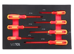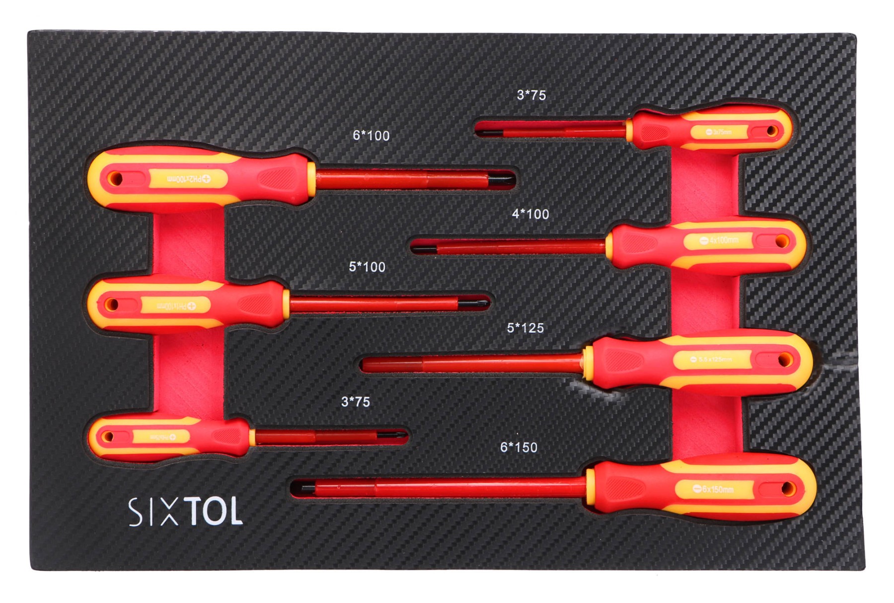 - 2x Destornilladores de precisión: SL3 × 100 mm (plano); PH0 × 100 mm (cruz)- 8. Cajón – 7x destornilladores aislados (eléctricos)