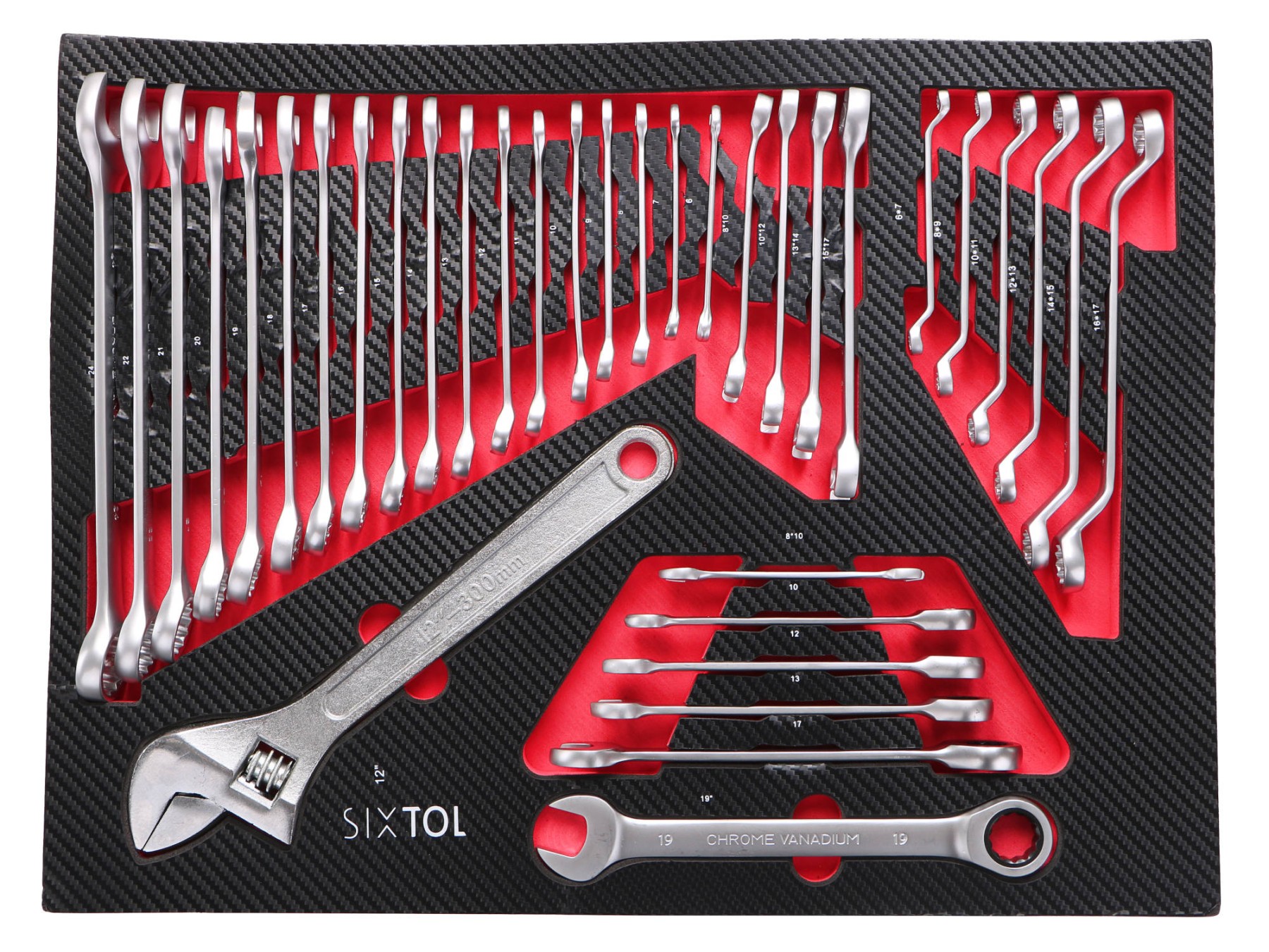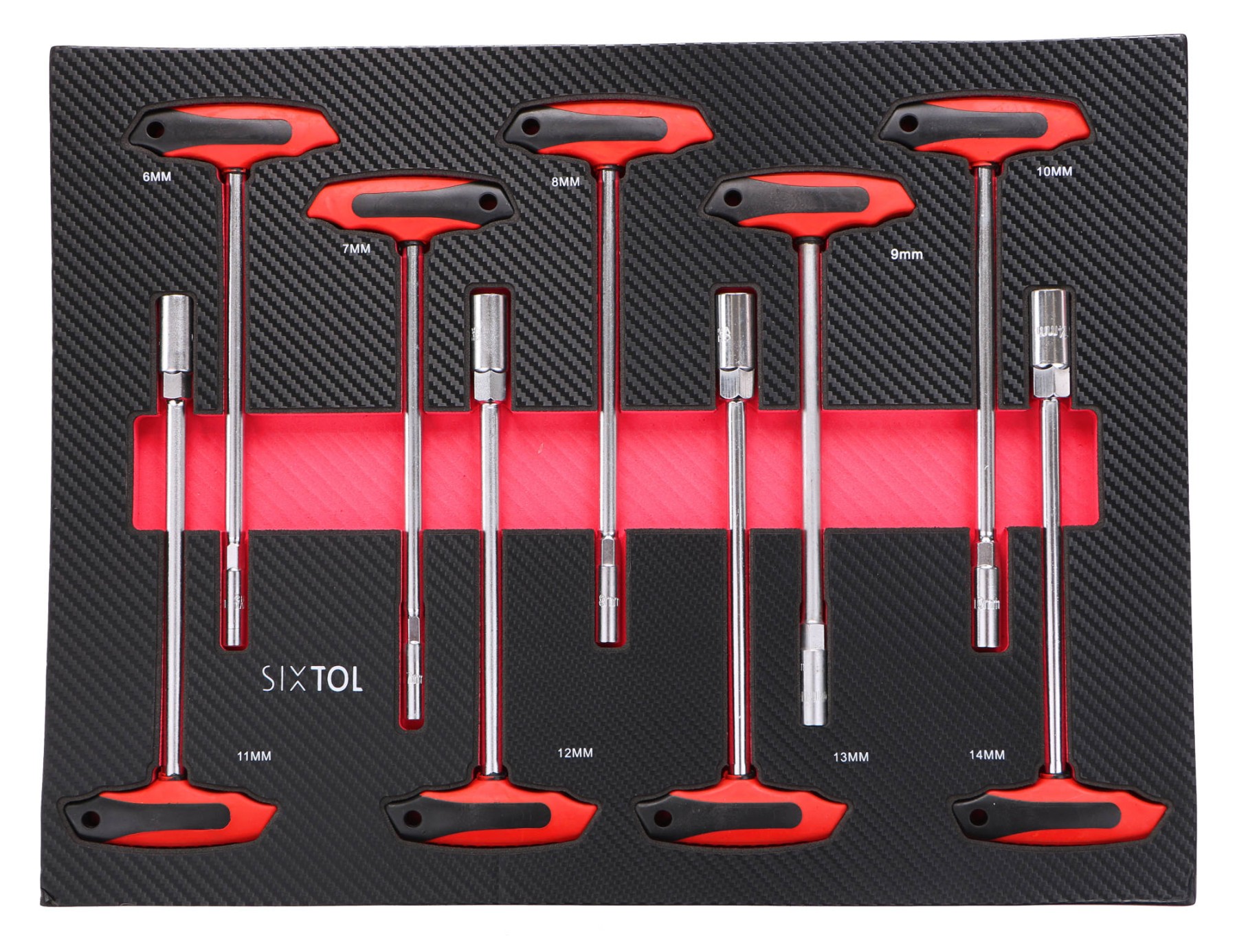 - 1x Llave ajustable 30,48 cm (12")- 4. Cajón – 9x llaves de vaso en T (T-bar socket set)