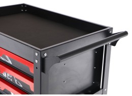 El carro de taller con herramientas MECHANIC TROLLEY JASON 80 combina una estructura sólida de acero SPCC de 0,8 mm con un almacenamiento ordenado de 80 piezas de vasos, carracas, prolongadores, articulaciones y adaptadores dispuestos en espuma EVA de calidad para una rápida orientación y un almacenamiento seguro. El carro está equipado con tres cajones espaciosos con una capacidad de carga de 25 kg, una balda inferior abierta con capacidad de 50 kg y una superficie de trabajo superior con borde elevado para depositar herramientas durante el trabajo. Grandes ruedas de 4" permiten una manipulación sencilla en el taller o garaje y un asa lateral facilita el traslado incluso con cargas elevadas. El set está diseñado para trabajos de mantenimiento y reparación de automóviles, tareas de montaje y servicio, así como para uso en el garaje doméstico, proporcionando herramientas inmediatamente accesibles en todas las medidas métricas habituales, incluidas las cabezas de vaso aptas para trabajar con llantas de aluminio. La construcción estable, la disposición limpia y la selección universal de herramientas crean una estación de trabajo práctica para tareas mecánicas, de montaje y servicio diarias.