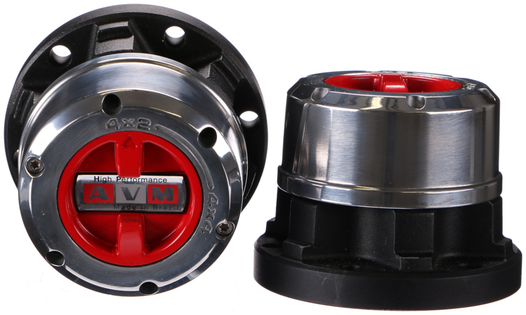 Juego de 2 unidades de cubos de desconexión manual de la más alta calidad de la marca AVM, adecuados para vehículos normales y todoterreno. Gracias a su construcción maciza en acero y al tratamiento con pintura epoxi son resistentes a condiciones exteriores extremas. Los componentes interiores están trabajados con precisión. Los modelos HP (High Performance) están diseñados para cargas elevadas. Los cubos se pueden usar también en ruedas de más de 33 pulgadas.