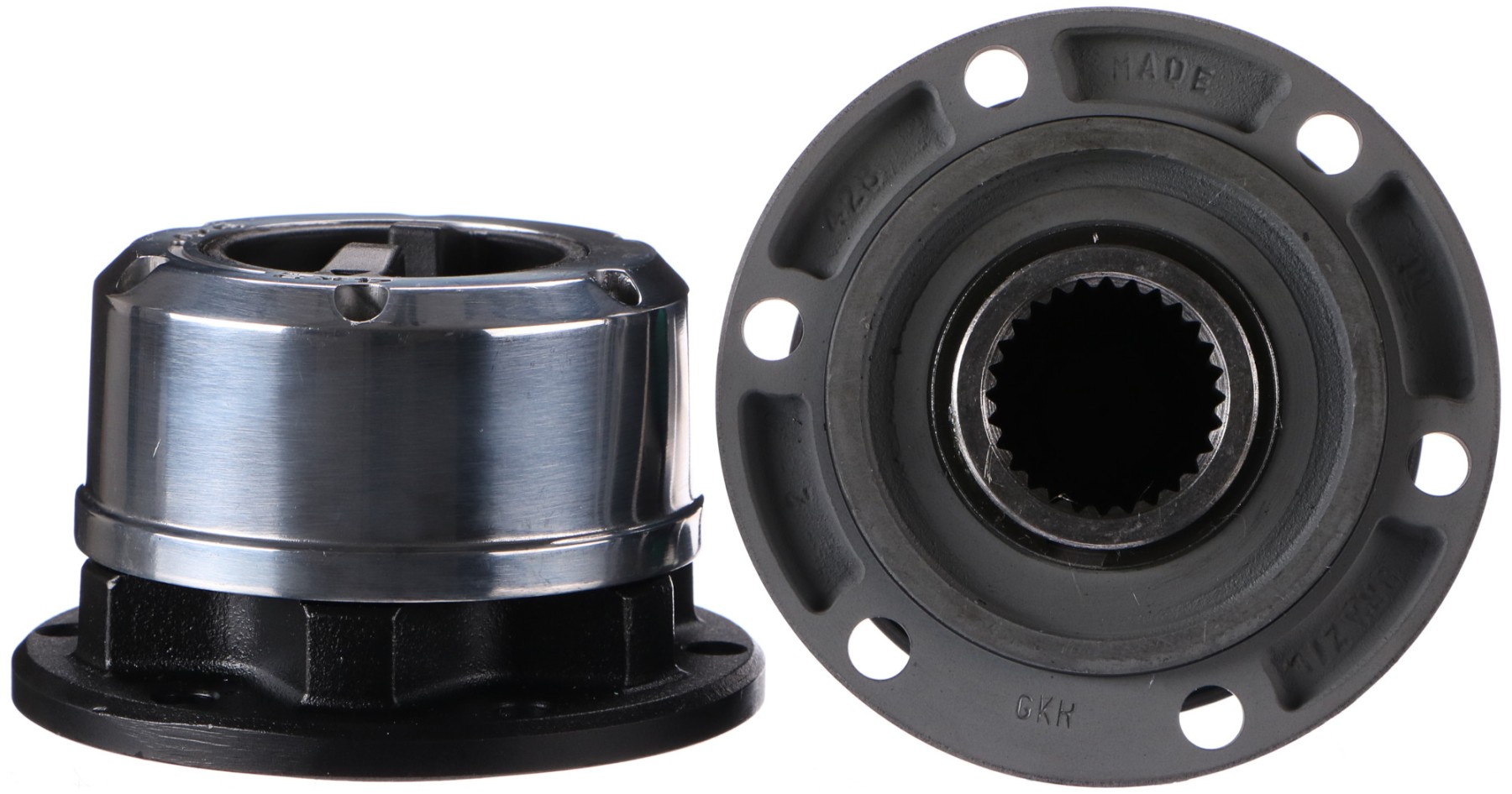 Juego de 2 unidades de mecanismos de rueda libre manuales de la más alta calidad de la marca AVM, adecuados para vehículos normales y todoterreno. Gracias a su construcción maciza en acero y al tratamiento con pintura epoxi, son resistentes a condiciones exteriores extremas. Los componentes internos están fabricados con precisión.