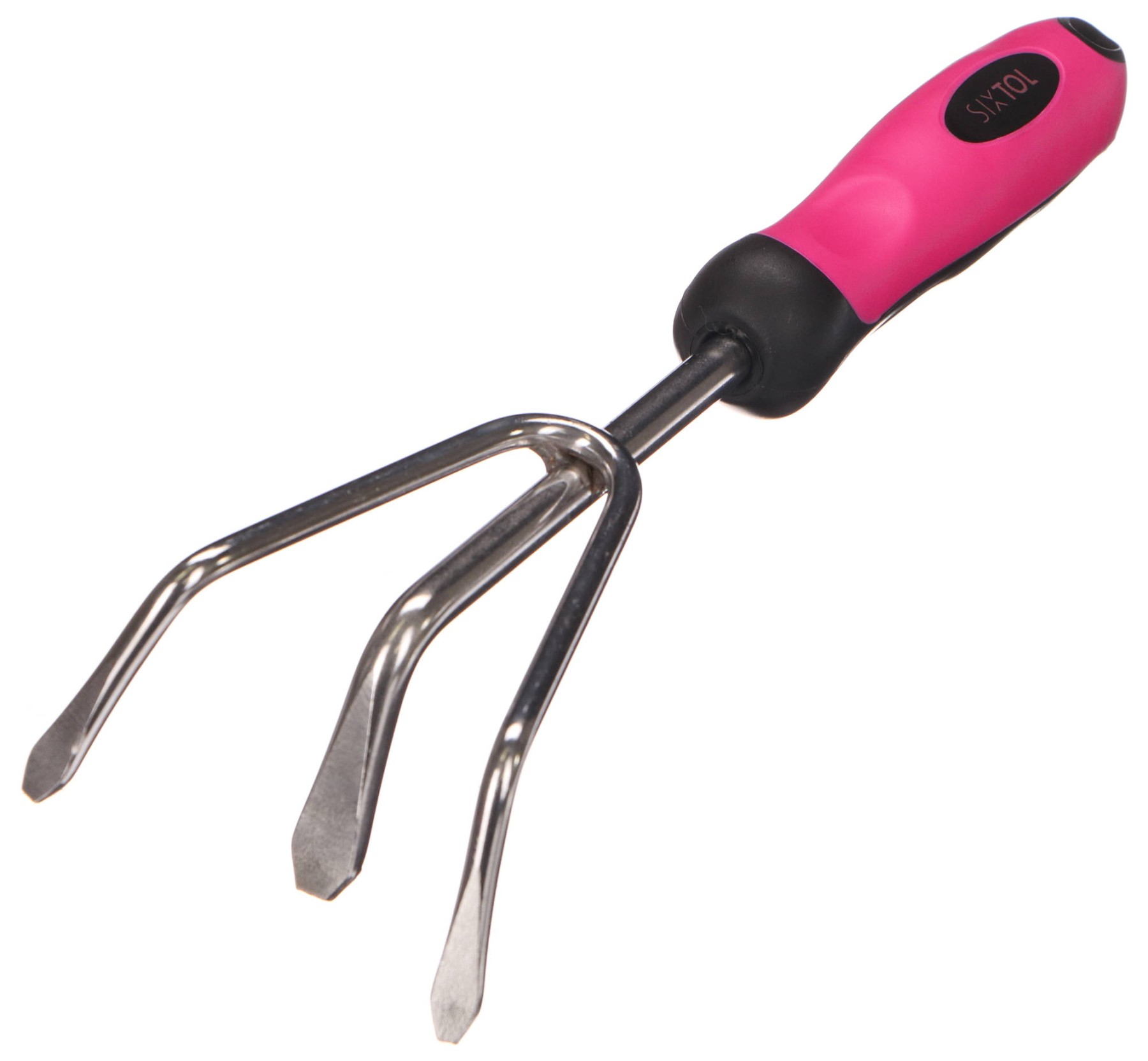 resistencia a la corrosión y durabilidad a largo plazo. El mango ergonómico proporciona un agarre cómodo y seguro. Su color rosa añade personalidad y carácter a tu jardín. El cultivador es perfecto para varias tareas de jardinería, como