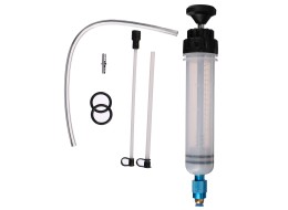 Extractor de aceite manual SIXTOL 1, 200 ml El extractor de aceite manual SIXTOL 1 de 200 ml es una herramienta práctica para el mantenimiento de vehículos, equipos de jardinería y otras máquinas. Permite extraer y rellenar fácilmente líquidos como aceite de motor, aceite de transmisión, líquido de frenos o refrigerante, especialmente en lugares donde no se pueden utilizar herramientas convencionales. El recipiente transparente permite la inspección visual de la cantidad y el estado del líquido durante el llenado o la extracción. El juego incluye dos mangueras de diferentes diámetros con tapones, lo que facilita la manipulación del líquido de forma segura y limpia. Su robusta construcción, compuesta por una combinación de plástico, aleación de aluminio y caucho resistente, garantiza una larga vida útil incluso con un uso frecuente.