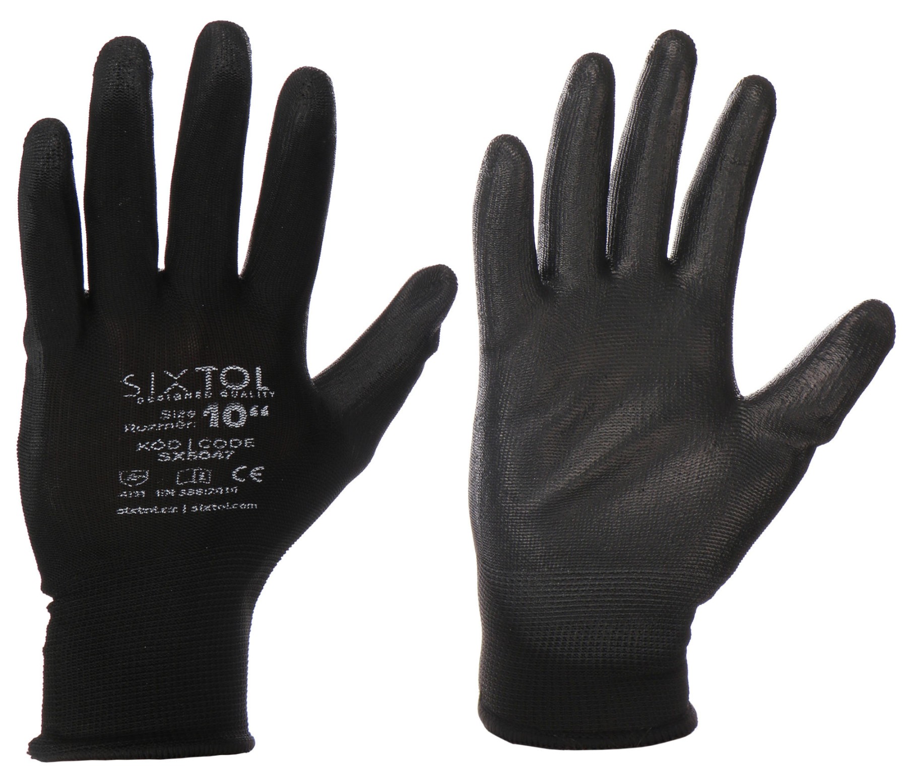 Guantes de trabajo de poliéster, medio recubiertos de poliuretano GLOVE PE-PU 10, negro, talla 10" SIXTOL
