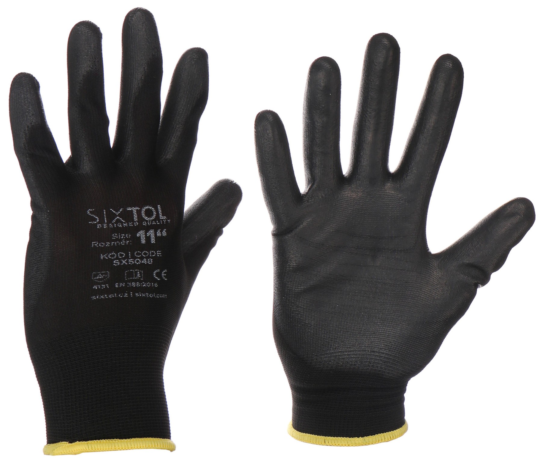 Guantes de trabajo de poliéster, medio recubiertos de poliuretano GLOVE PE-PU 11, negro, talla 11" SIXTOL