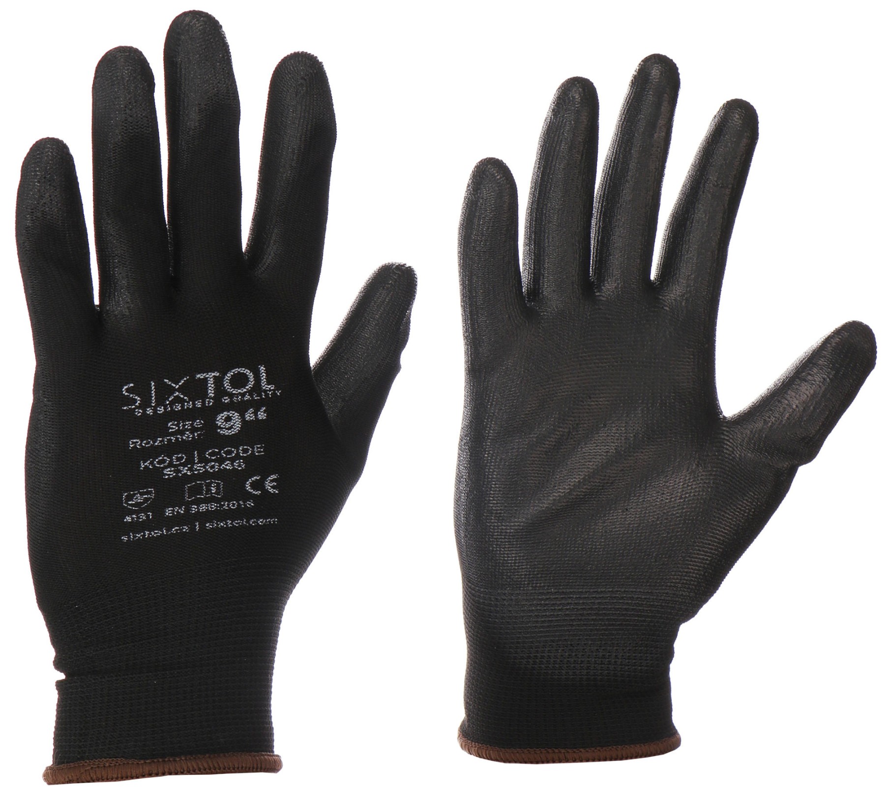 Guantes de trabajo de poliéster, medio recubiertos de poliuretano GLOVE PE-PU 9, negro, talla 9" SIXTOL
