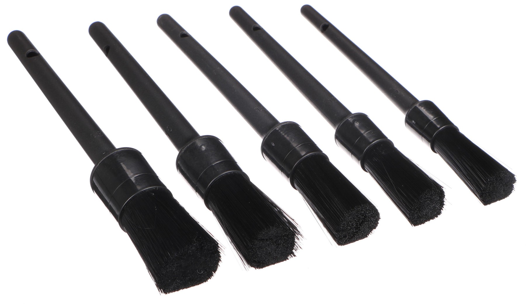 El juego de cinco cepillos duros de precisión, CAR DETAILING BRUSH 5 HARD, está diseñado para una limpieza a fondo de tu coche. El set incluye 5 cepillos duros de distintos tamaños, perfectos para alcanzar pliegues de puertas, consolas centrales, salidas de aire y mantener limpio el coche. La dureza de los cepillos está codificada por colores: los cepillos rojos son suaves, mientras que los negros son duros.