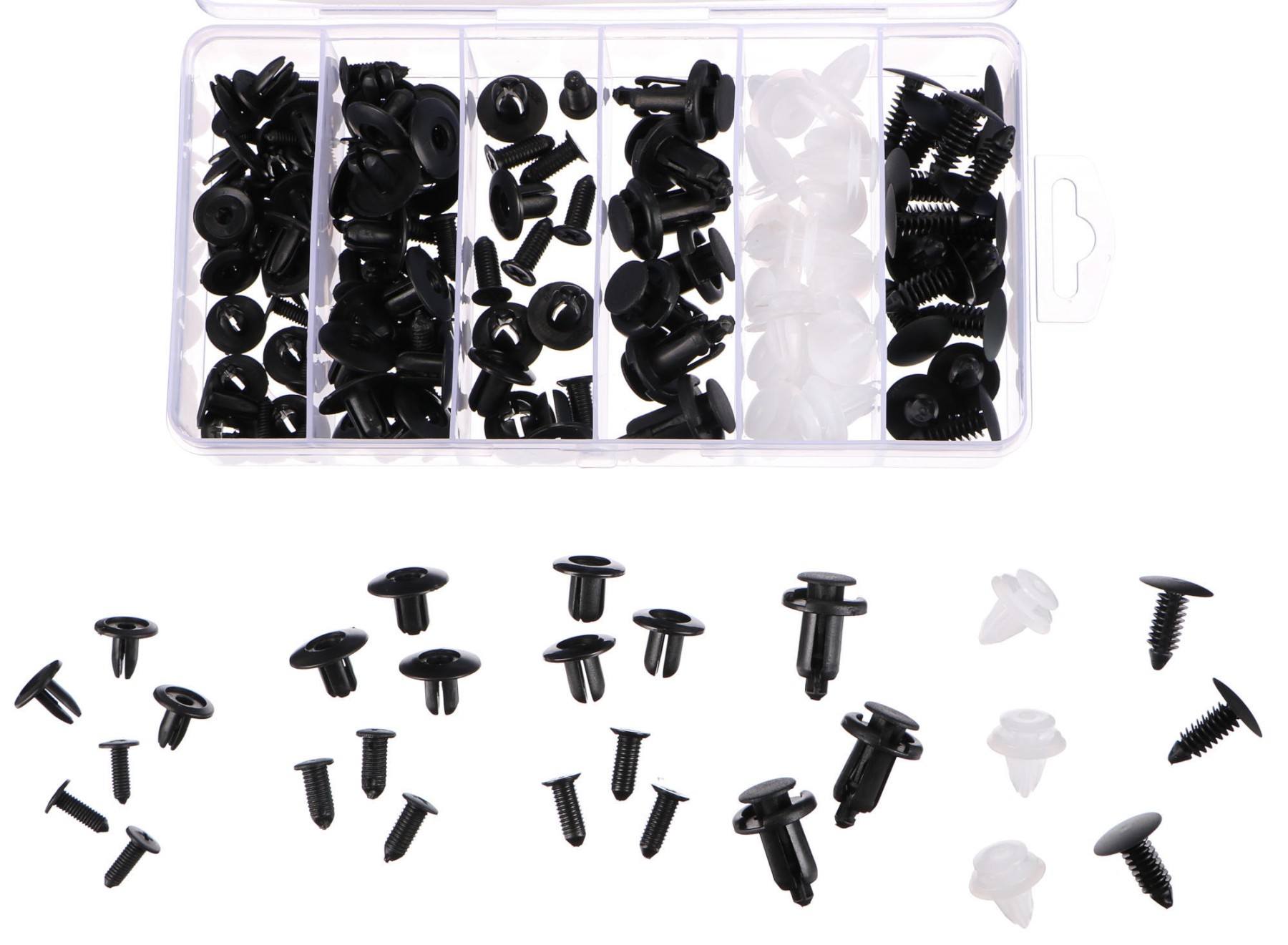 Contenido del paquete:- 6 tipos de clips y sujetadores para asegurar parachoques, guardabarros, cubiertas, tapicería (maletero), asientos, paneles y accesorios de paneles de puertas