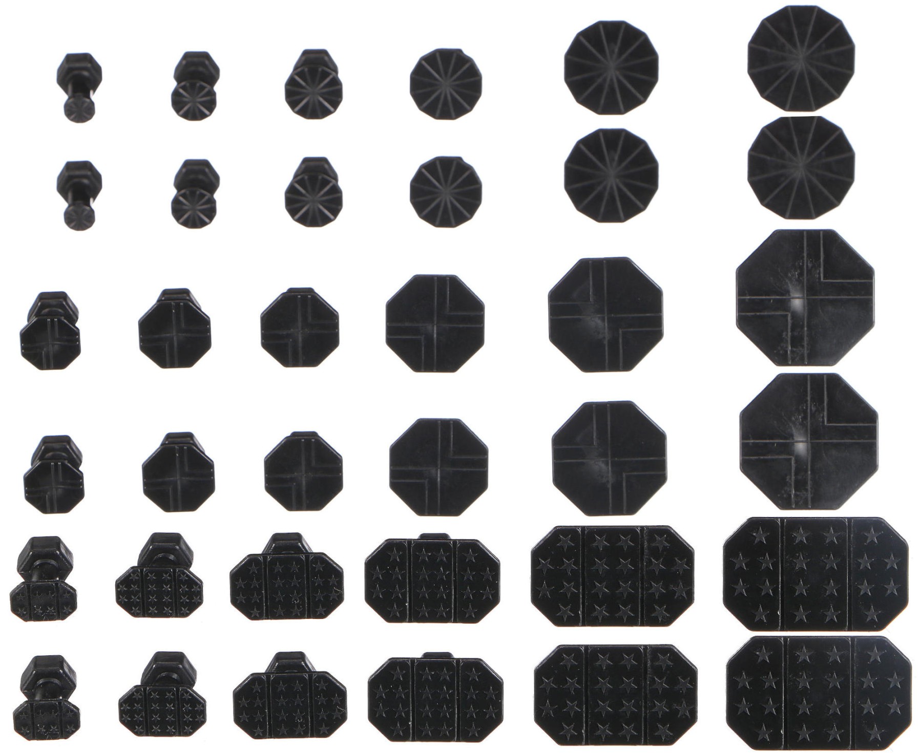 El CAR BODY REPAIR SET 40 está diseñado para eliminar abolladuras de las carrocerías de los coches y es adecuado para reparar pequeños daños causados por colisiones u otros accidentes. Este juego ayuda a eliminar las partes abolladas y restaurarlas a su forma original sin dañar la pintura. Dependiendo del tamaño de la abolladura, elige el adaptador de plástico adecuado, que se pega al área afectada con una pistola de pegamento caliente. Elige el color de la barra de pegamento según el color de la carrocería del coche. La pistola de pegamento no está incluida en el paquete. Una vez que el pegamento se haya secado, coloca el extractor en el adaptador y aprieta el tornillo. Luego presiona la manija y repite hasta que la carrocería esté enderezada. Después de la reparación, rocía el pegamento seco con alcohol y retíralo fácilmente con una espátula.