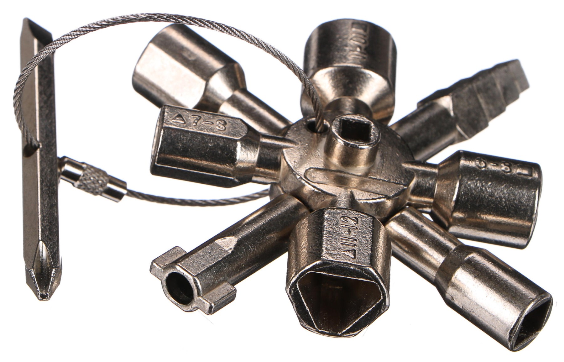 Llave universal para cuadros eléctricos 13 en 1 UNI SERVICE BOX 13 para el uso diario. El llavero ofrece
