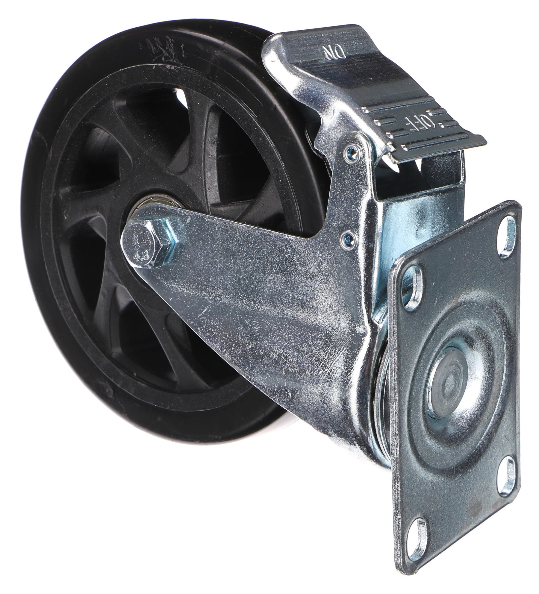 - Las ruedas giratorias están equipadas con freno para un aseguramiento seguro del carro
